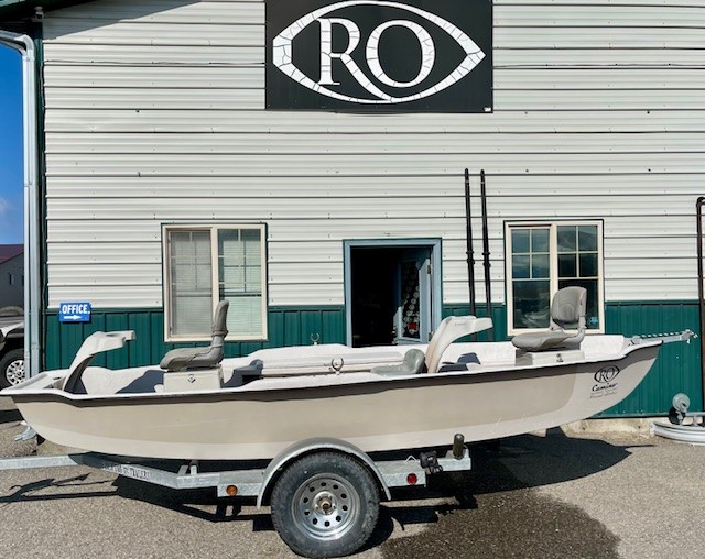 This 2014 RO Camino Nomad has plenty of storage with storage boxes under all the seats, rod holders that will hold up to four rods and side storage, standing braces, floor anchor system, and cup holders. This boat also comes with a used Deluxe Black Dog galvanized trailer, oars, anchor, and rope. ALL NEW AND USED RO DRIFT BOATS COME WITH OUR LIFETIME WARRANTY Contact RO Sales Department Phone: 406-641-0011 or Email sales@rodriftboats.com